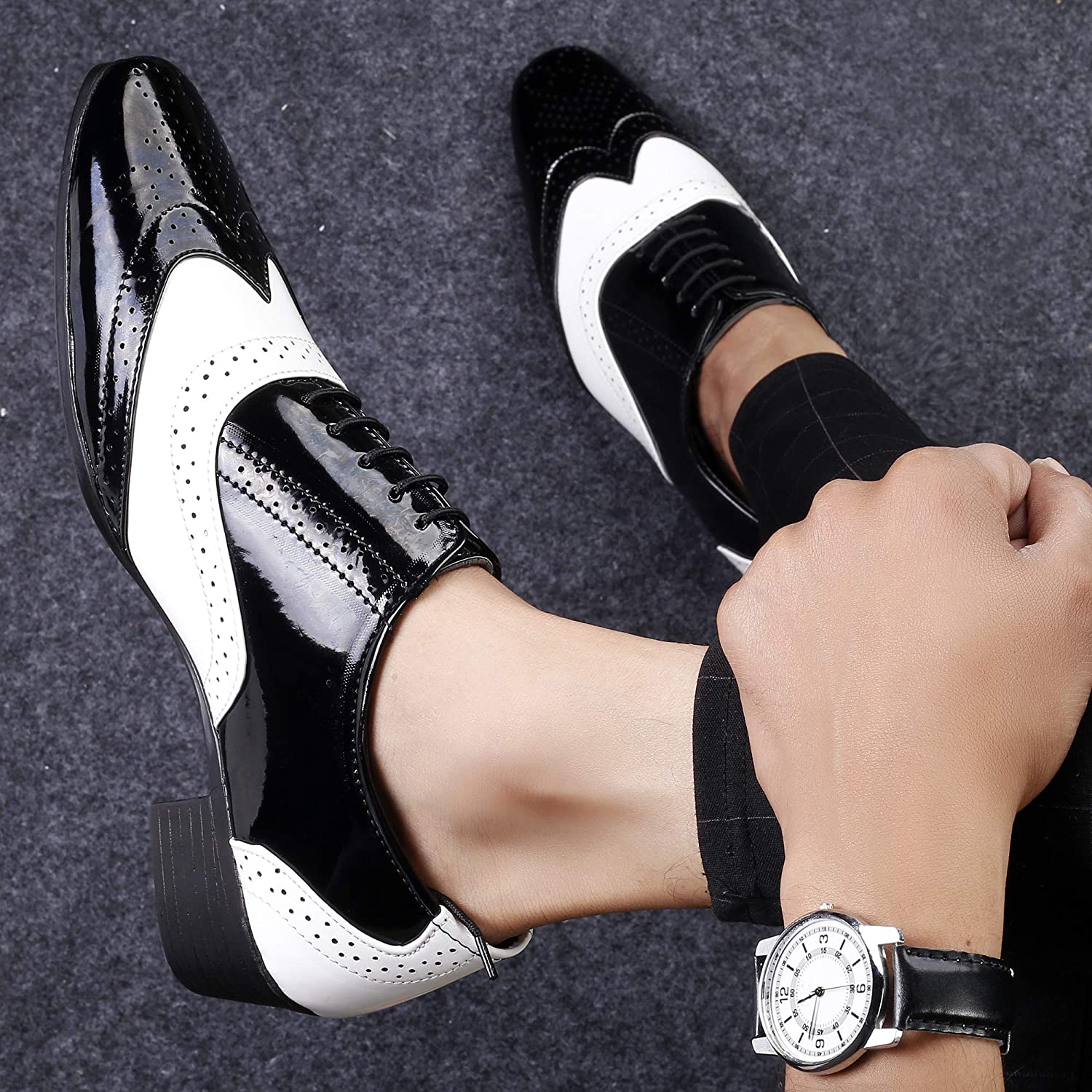 Classy Black And White Height Increasing Casual And Formal Oxford Lace-Up Shoes-JonasParamount